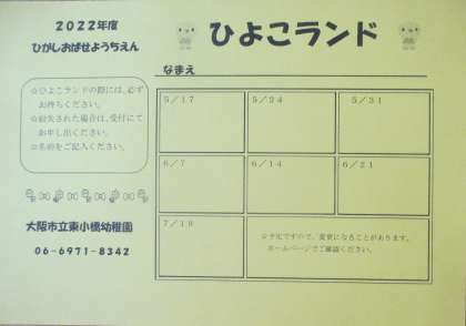 明日、6月21日(火)のひよこランド(園庭開放)は9:00時点で雨が降っていた場合、中止とさせていただきます。