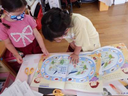 今日持ち帰っている月刊絵本「おすしのさかな」はきく組さんのお気に入りです♪