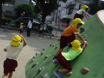 東小橋公園へお散歩 公開日 2022/09/16 更新日 2022/09/16 きくぐみ おとなりの東小橋公園にお散歩に行きました。 「どんぐり見〜つけた!」 まだこんなに暑いのに、もう秋が来ているんですね。 草むらの中で、バッタがぴょ〜ん!「あ!あそこ!」「こっちに逃げた!」 大騒ぎしてつかまえたバッタさん、きく組に連れて帰ってきました。 これからずーっと一緒に遊べるね。 大きな滑り台でも思いっきり遊びました。 楽しかったね。また遊びに行こうね。 いいね(0)