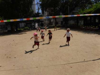 広い公園でかけっこしたり、遊具で遊んだり、幼稚園とは違った環境の中、のびのびと遊ぶことを楽しんでいましたよ。