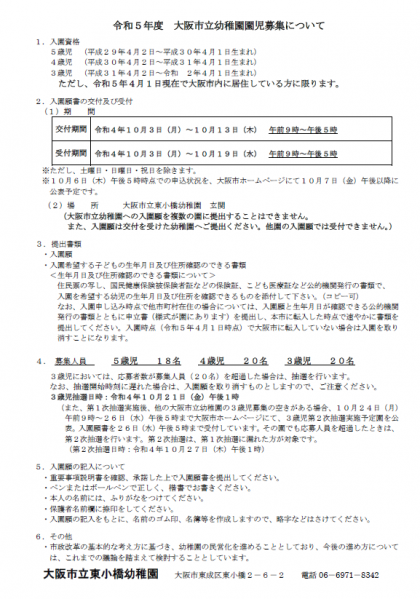 令和5年度園児募集について