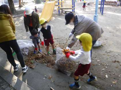 みんなで公園清掃 公開日 2022/11/22 更新日 2022/11/22 行事 今日は、幼稚園の隣にある東小橋公園を、おうちの人と一緒にお掃除しました。ゴミを拾ったり葉っぱを集めたりして、みんなできれいにしました。きれいになって気持ち良くなりましたね。 いつもお散歩したり遊んだり、幼稚園が終わった後にもたくさんのお友達が遊ぶ、みんなのたいせつな公園です。これからも、みんなで気持ちよく使えるようにしていきましょう。 お忙しい中、ご協力いただいた保護者の皆様、どうもありがとうございました。 いいね(0)