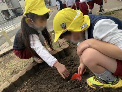 4歳児きく組さんは、大掃除もですが、チューリップの球根も幼稚園と公園の花壇に植えてくれました。春になるのが楽しみですね。