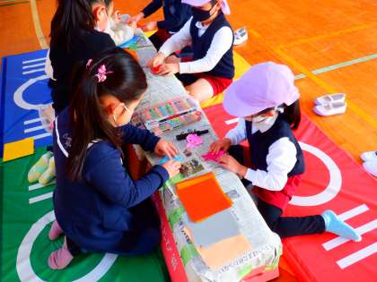 今日は5歳児ふじ組が東小橋小学校の一年生と交流をしました。