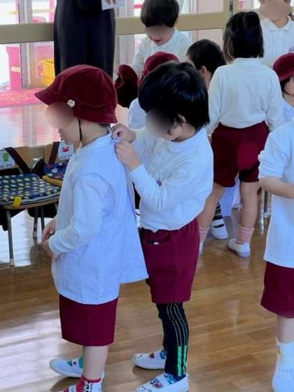 朝の用意の際に、ふじ組(5歳)のお友達が早めに登園して、お手伝いをしてくれました!