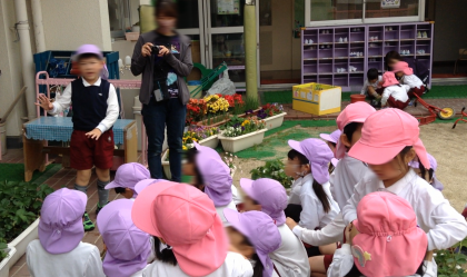 もも組は「ちっちゃないちごがいいました〜♪」とちっちゃないちごの歌を歌い、おうちの人とイチゴを摘んで持って帰りました!どんな味がするかな〜?
