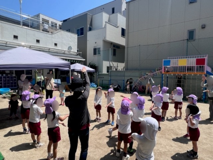 ふじ組さんがおもてなしをしてくれて、砂場や、色水遊び、スーパーボールすくいをして遊びました。