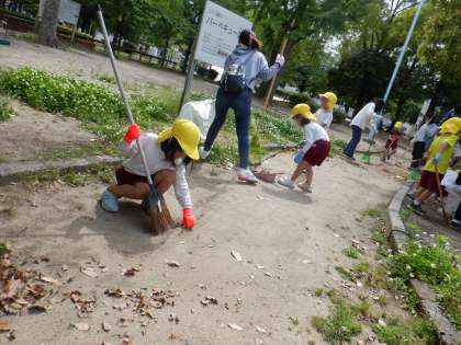 お家の人と一緒に掃除をしてピカピカの東小橋公園になったね♪