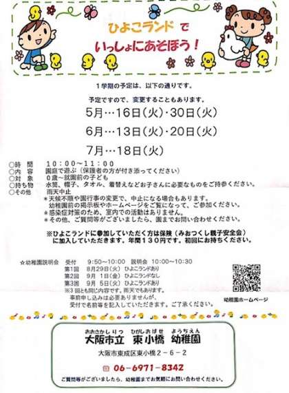 5月30日(火)のひよこランドは雨予報のため中止いたします。
