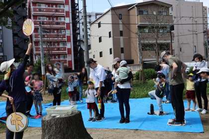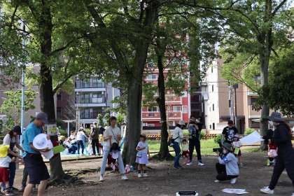 からだダンダンの体操から始まり、しっぽとり、玉入れ、おとなこうえんのふれあいダンス、新聞じゃんけんといろいろな遊びを同じチームの友達やおうちの人とできましたね!
