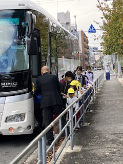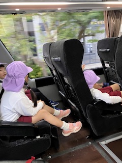バスの中では歌を歌ったり、周りの景色を見ながら何が見えるかなクイズをして楽しんでいます。
