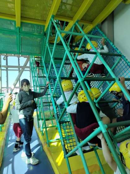 巨大ジャングルジムに挑戦 公開日 2023/11/07 更新日 2023/11/07 行事 ふじ組は4階から8階までの巨大なジャングルジムにチャレンジしました。途中で怖くて涙が出ても、後ろから登ってくる友達が「大丈夫だよー!」と励ましてくれました。おかげで全員で8階までクリアできましたー^ ^友達最高! いいね(0)