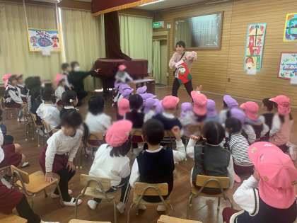 英語で書かれている文字に興味津々で、先生が読む英語をじっくり聞く子どもたち。「なんて書いてるんかな?」と、みんなで考えていると、英語でお話できるふじ組のお友達が、日本語に訳して教えてくれました!