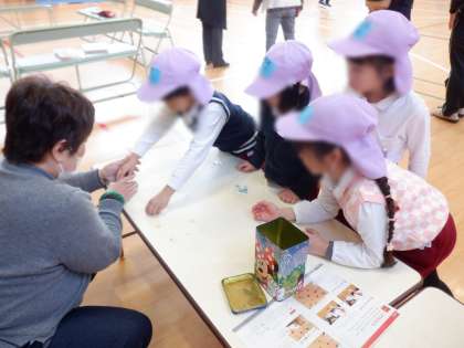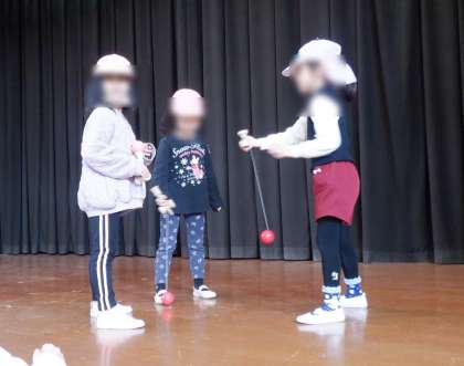 今日は地域の方も来てくださって、けん玉やおはじき、お手玉などの昔遊びも教えていただきました。