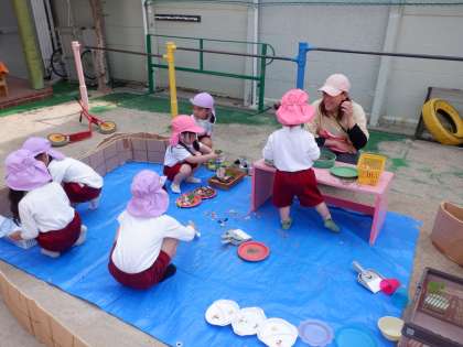 入園したばかりの3歳児さんもスケーターや虫探し、ままごとなど好きな遊びを見つけ存分に遊んでいます。