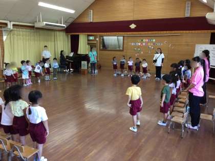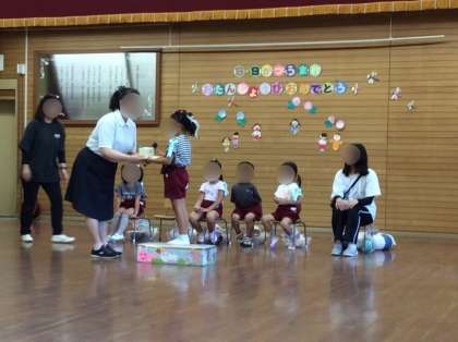 なわとびや蝶々になりきって入場し、園長先生から記念品を貰いました!