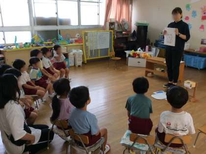 その後は、養護教諭から「和式トイレの使い方」についての保健指導がありました。