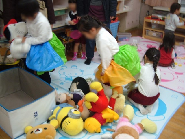 保育室の中で、4歳児きく組が小さいお友達と一緒に遊びました。