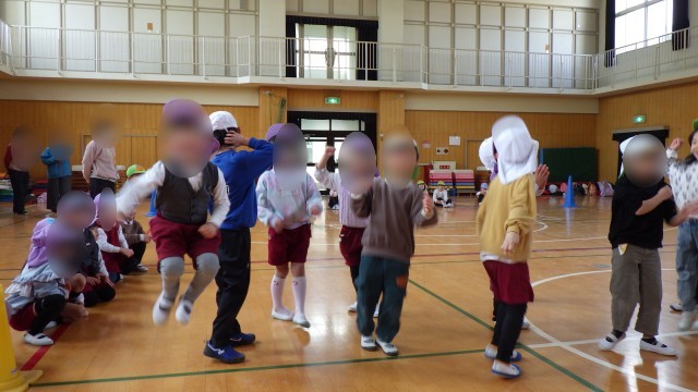 5歳児ふじ組が、東小橋小学校の体育館で行われたドッヂボール交流会に参加しました。