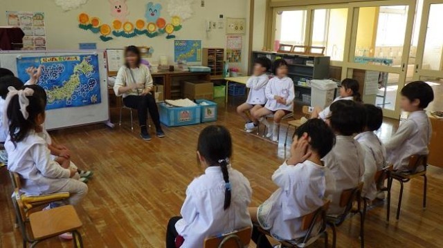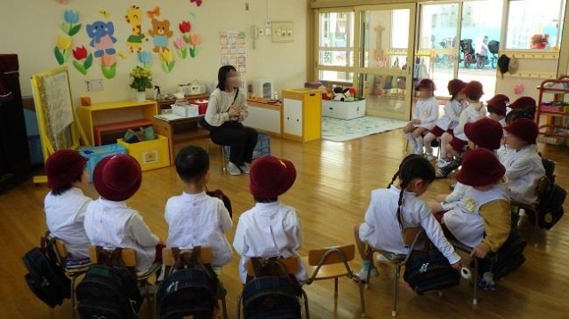お部屋に帰ると、担任の先生のお話をしっかり聞いていました。これから1年間、ワクワクいっぱい、元気いっぱい過ごしましょうね。