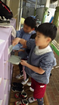 いよいよ明日は作品展。今日は、お部屋を掃除して自分たちの作品を並べて、異年齢仲良...