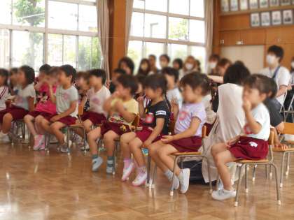 歯みがき指導の後は、園歯科医の先生から保護者の方に向けて講話がありました。生活習慣についてや乳歯・永久歯の特徴、歯みがきについてなど、分かりやすい専門的なお話で貴重な機会になったと思います。