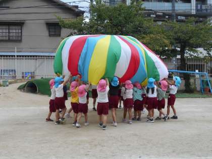 自分なりに目標をもって取り組んだり、友達と一緒に力を合わせてパラバルーンで遊んだり、10月12日に行われる運動会を心待ちにしています!