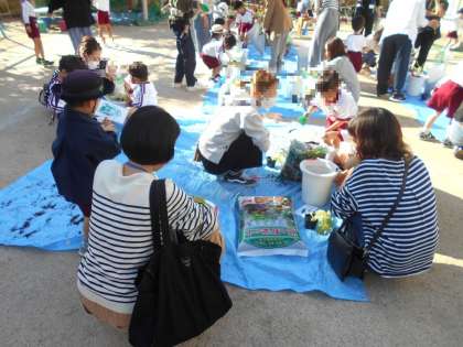 「おおきくなあーれ」と言いながら、毎日水やりをして生長を楽しみにしている子どもたちです。