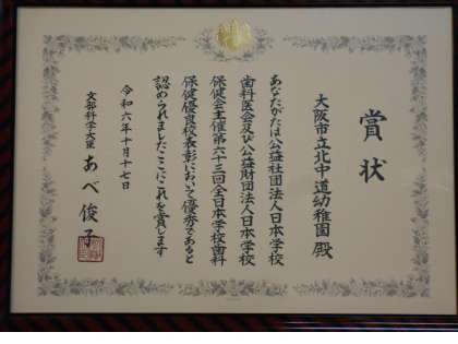 子どもたちの取組、保護者の方々や園歯科医先生のご協力やご尽力の結果、このような賞をいただき、大変嬉しく思います。ありがとうございます。