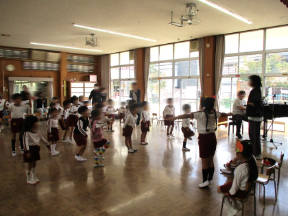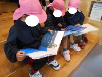 果物かんむりをかぶった誕生児は、電車に乗って入場しました!自己紹介はとてもドキドキしていましたが、お家の方からあたたかいお祝いの言葉をもらって嬉しそうでした。園長先生からプレゼントをいただいたり、5歳児(そら組)から手作りの『まつぼっくりけんだま』をもらったり、親子でふれあい遊びをしたりしました。最後は3歳児(あか組)から『まねっこじゃんけん』を教えてもらい、みんなで楽しみました♪
