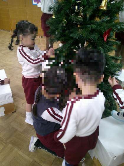 最後にツリーの1番上に『星』が飾られ、「わ〜!」と歓声が上がりました♪サンタクロースさん来てくれるかな?お楽しみに♪