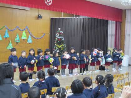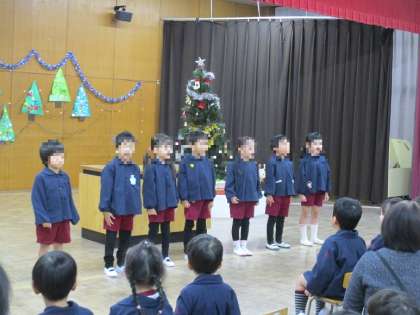 終業式では養護教諭から冬に流行する感染症についての話を保護者の方に聞いていただいたり、クラスごとに歌や楽器遊び等を披露し、成長した姿を見てもらうことができました。