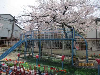 園庭の桜も満開に咲いて、進級をお祝いしてくれているようでしたよ。