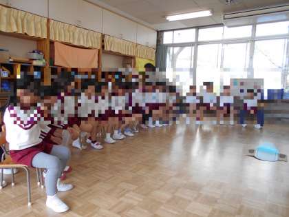 5歳児のそら組さんはさすがお兄さん、お姉さん!カエルさんポーズ完璧でした!