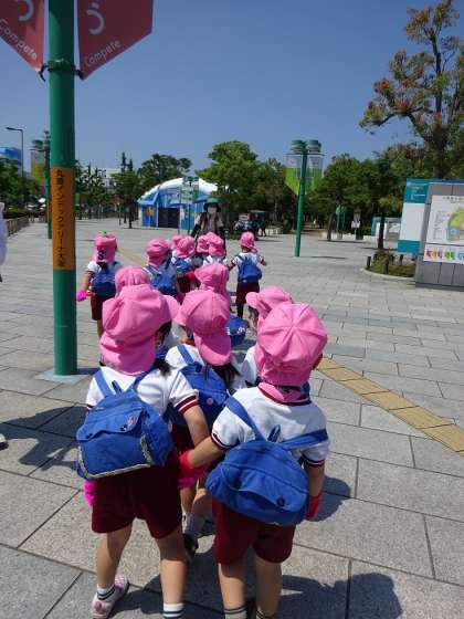 友達や先生と一緒に、初めて電車に乗って園外保育に行きました!