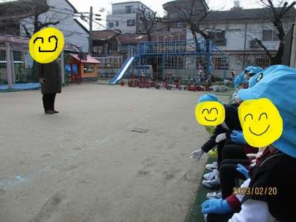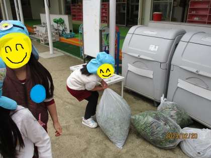 2月20日、そら組が幼稚園で「大阪クリーンアップ」を行いました。事前に園長先生が撮影した写真で北中道小学校のお兄さんお姉さんが地域で行った「大阪クリーンアップ」の様子を見ていたので、「よーし、ピカピカにするぞー!」とやる気いっぱいで園庭の草引きをしました。30分もしないうちにゴミ袋3袋がいっぱいになりました。地域の方も来てくださって、そら組の姿を褒めてくださり、北中道地域活動協議会のかわら版にも載せてくださいました。ピカピカ、綺麗な幼稚園になって嬉しかったね!
