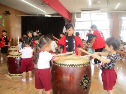土曜参観を行いました! 公開日 2023/09/13 更新日 2023/09/13 園の様子 北中道地域の和太鼓クラブ飛童さんが来てくださって、和太鼓を披露してくださいました! 大きな太鼓の音が響きわたり、リズムに合わせて太鼓を打つ姿を見て、子どもたちはとても感動していました✨ 最後は、和太鼓クラブのお兄さんお姉さんが優しく太鼓の打ち方を教えてくださって、貴重な経験ができ、大満足の子どもたちでした! いいね(0)