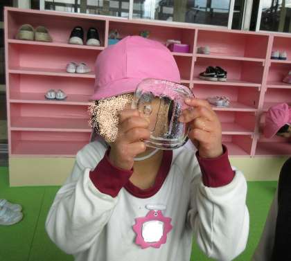 次の日、登園してすぐに確認すると、こおっていました!!!大成功!