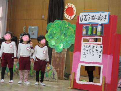 劇遊びでは大道具を一緒につくったり、セリフを考えたりして劇遊びを進めてきました。