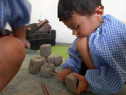 土粘土を踏んだり、こねたりして感触を楽しんでおり、繰り返し遊んでいく中で子どもたちは、土粘土名人になっています♪