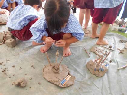 全学年で、土粘土で遊んでいます!