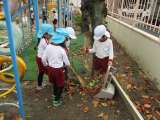 2学期にたくさん遊んだ遊具を洗ったり、園庭の落ち葉を集めたり、クラスの部屋の拭...