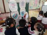 1月はうんちについての保健指導をしました。手作りのうんちの模型を見せながら、いい...