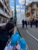 5歳児そら組が、地域の消防訓練の様子を見せていただきました。 地域の方と東成消防...