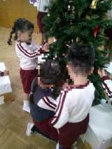 12月3日 わくわくたいむ(異年齢交流)でツリーに飾り付けをしました! 5歳児そ...