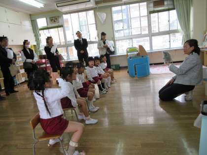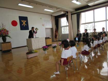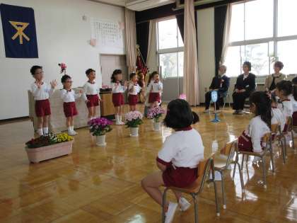 お家の方と一緒に胸に期待を膨らませ、みんなにこにこ笑顔で来てくれました。また、式中には、在園児たちが、新しい友達に向けて、気持ちを込めてお祝いの言葉やチューリップなどの歌を元気いっぱい歌いました。その姿はもうすっかり年長組さんです。