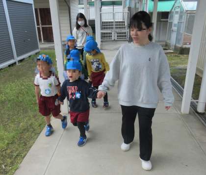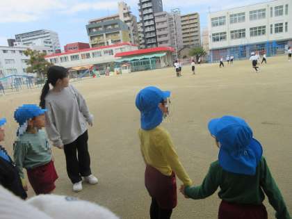 小学校と併設の幼稚園ならではの、楽しいお散歩でした♪