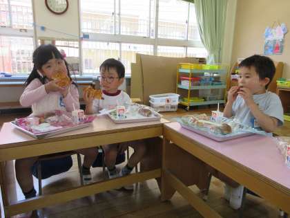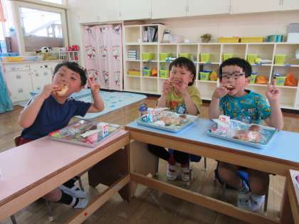 パン昼食 公開日 2025/05/10 更新日 2025/05/10 幼稚園日記 5月8日(木) 今日からPTA昼食事業が始まりました。 毎週木曜日はパン昼食です。 今年度初めてのパン昼食。パンが大好きな子どもたちは大喜び!ちょっと苦手な子どもたちは、お友達と一緒に食べることで、ちょっと食べてみようかなと、挑戦する子どももいました。 いいね(0)