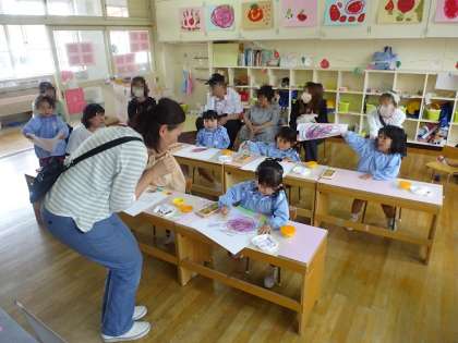 そのあとは、各保育室でかいたりつくったりしてしている様子を見て頂きました。