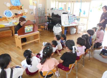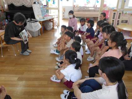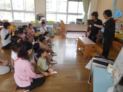 この日は、東成区絵本ボランティアの方が幼稚園に来てくださり、子どもたちに読み聞かせをしてくださいました。